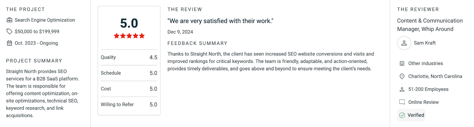 - Clutch/G2 Rating: 5.0/5 on Clutch (10 reviews)